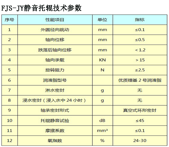 產品簡介: FJS-JY低噪音托輥,其管體選用優(yōu)質改性超高分子量聚乙烯(UHMW-PE)主材料,通過良好的生產加工工藝,使動平衡等級達到G16(ISO1940)標準,運行平穩(wěn),U型通風槽精細加工,減少與皮帶的摩擦。結合華北塑料公司自主研發(fā)的唇邊式消音密封,使帶式輸送機的噪音降到(達到)國家標準GB12348以下。
